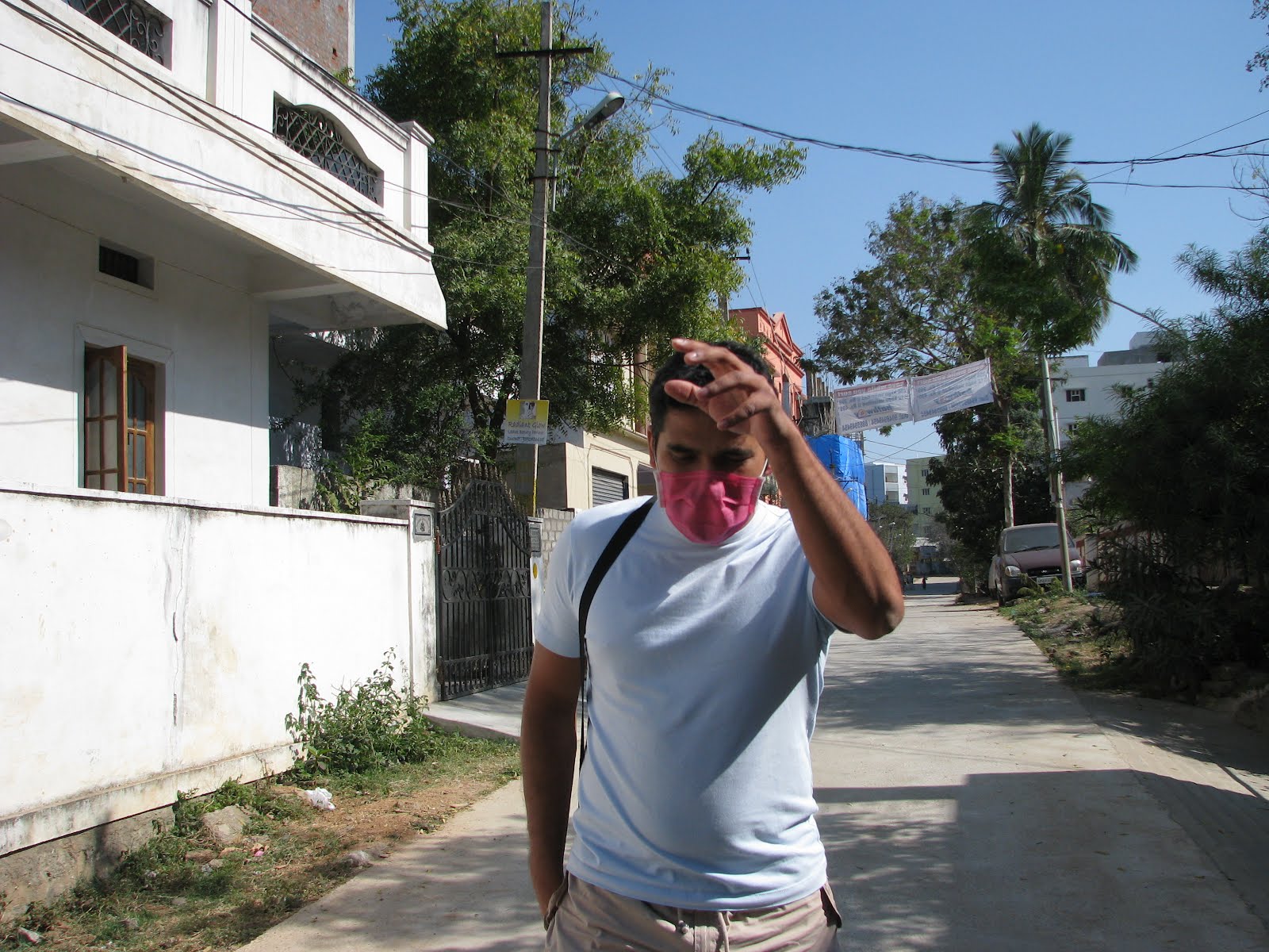 Uday and I can’t seem to get used to the dust and pollution and the smell of trash burning.